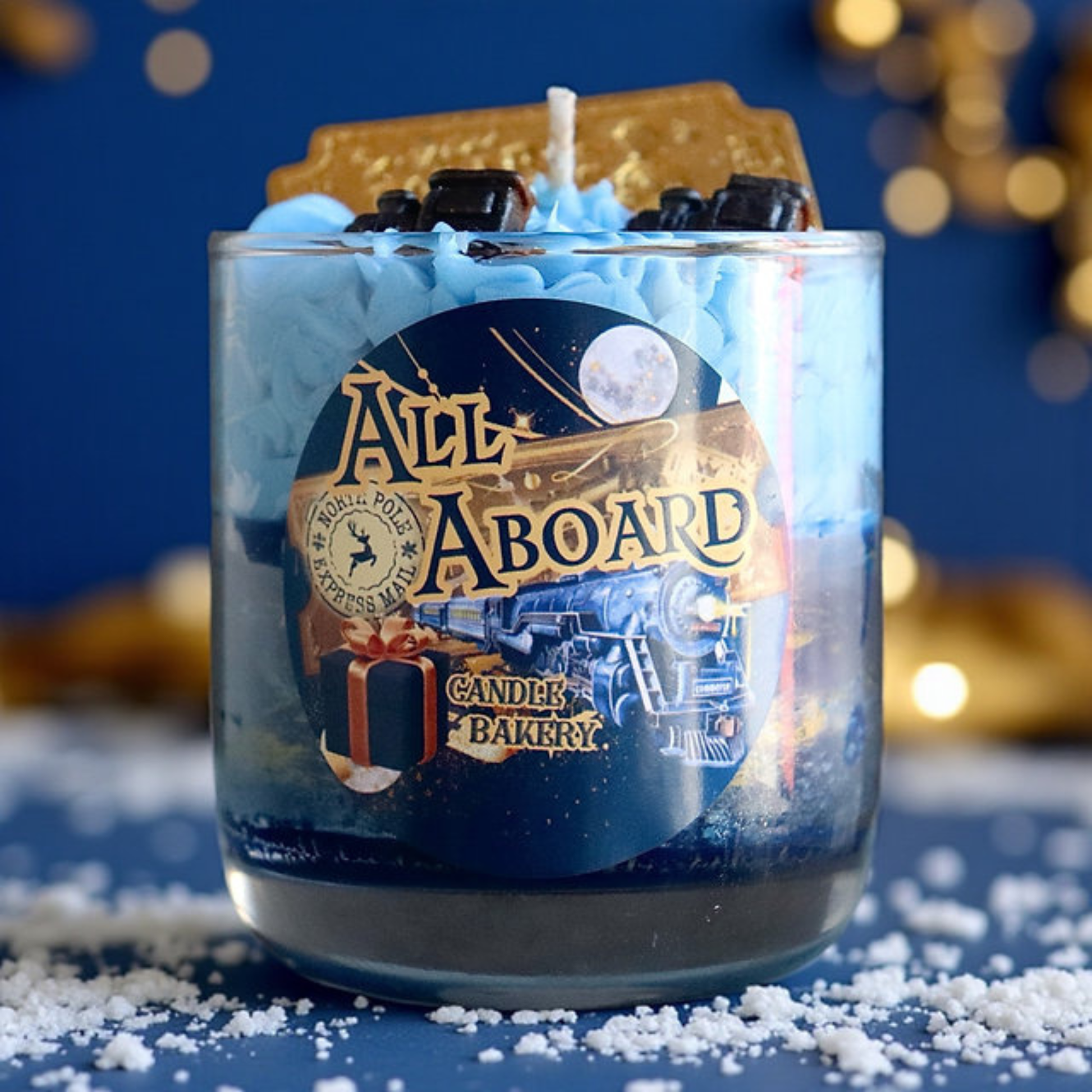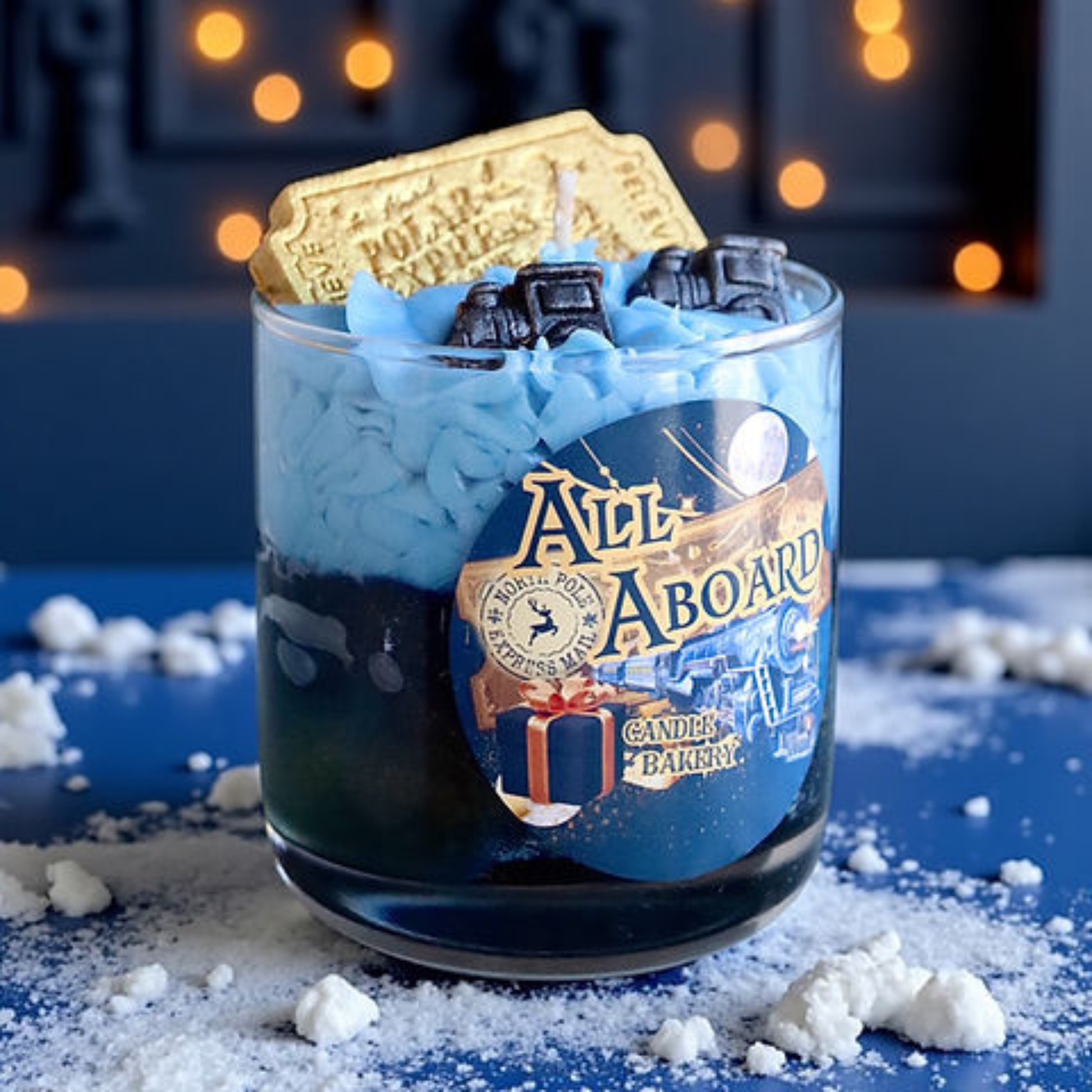 This dreamy candle takes you on a sweet winter adventure β a swirl of blueberry cake, creamy vanilla, and warm sugar that feels like dessert served on a snow-covered night. Topped with two detailed train cars and a hand-painted golden ticket, itβs a nod to the wonder of believing and the joy of the season. Light it, close your eyes, and let the scent carry you to that magical place where the snow glistens, the cocoa is warm, and the spirit of Christmas comes alive.